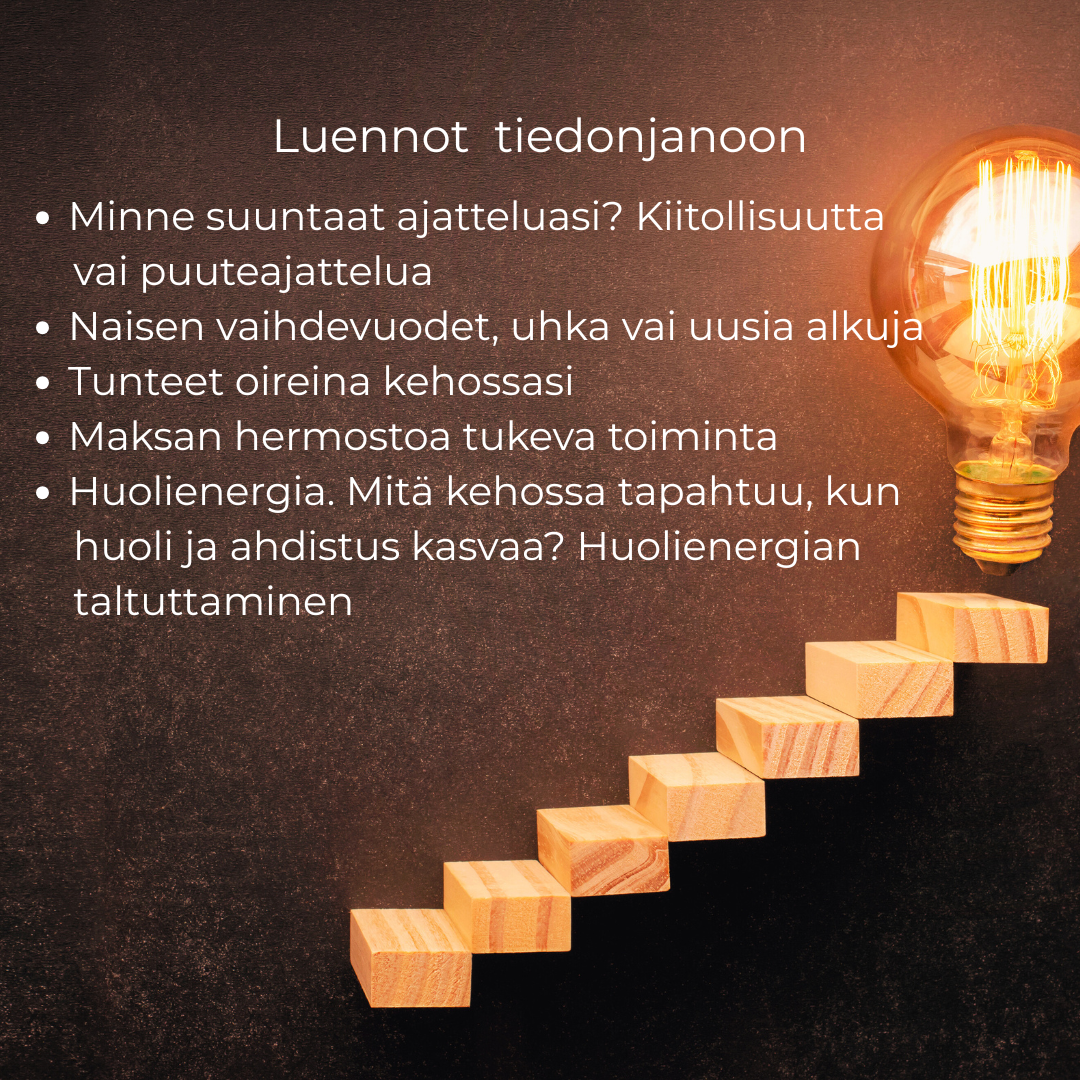 Luennot voi tilata haluaamasi paikkaan tai käyttää Hoitola Huokasun tiloja (max 15 hlöä).